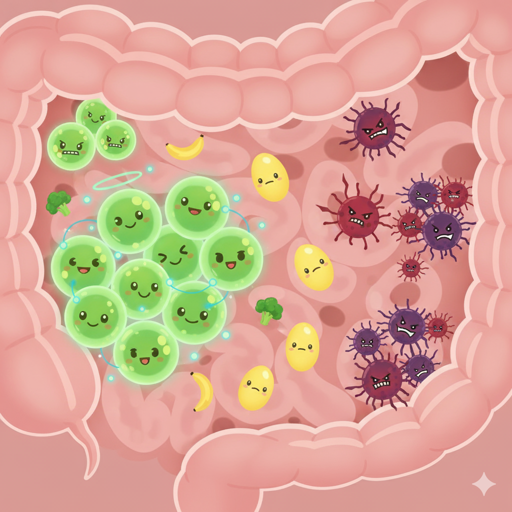 短鎖脂肪酸は、食物繊維などをエサにして腸内の「痩せ菌」と呼ばれる善玉菌が作り出す物質です。この短鎖脂肪酸には、驚くべき2つの効果があります。